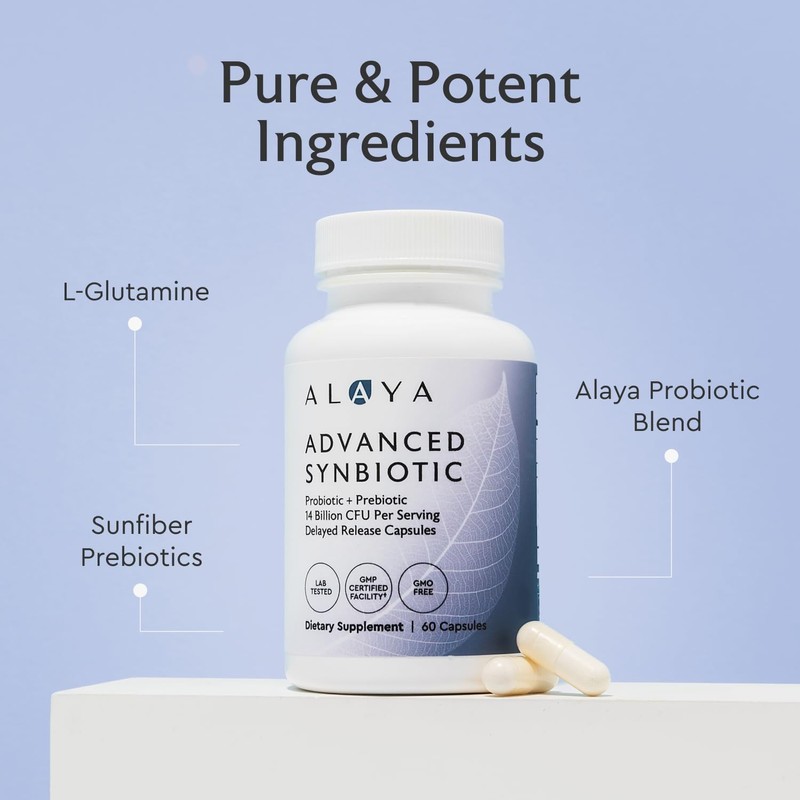 - OPTIMAL PREBIOTIC/PROBIOTIC BLEND: 14 Billion CFU of 7 Probiotic strains, 300mg of prebiotic fiber from SunfiberⓇ , and L-glutamine, an amino acid that supports gut lining.