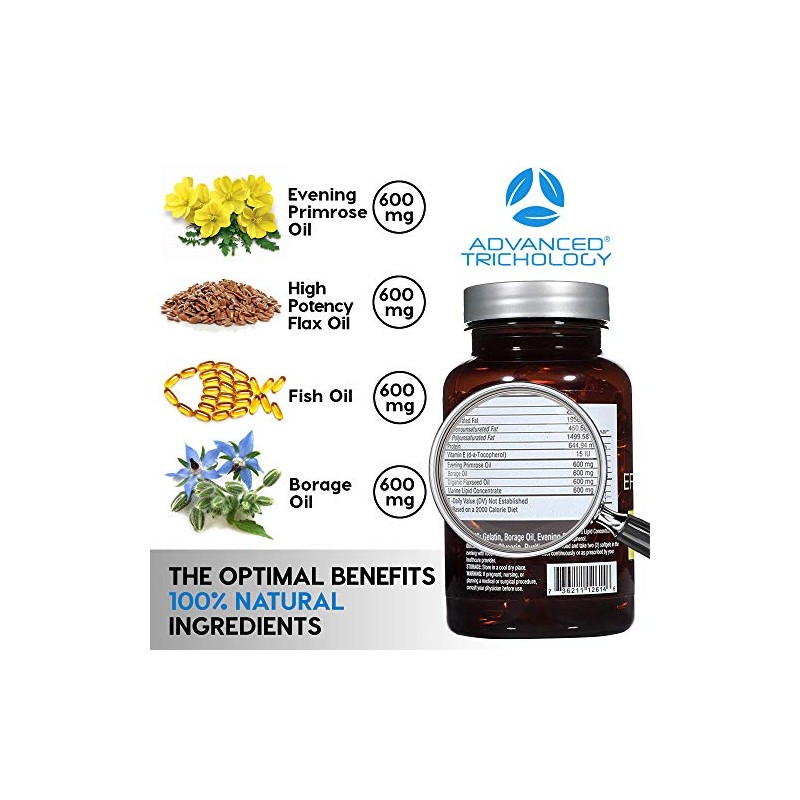 🌟 ⭐ Advanced Trichology EFA Completo con Óptima Omega 3 6 9 niveles de aceite de lino de alta potencia, aceite de pescado, aceite de boraje y aceite de onagra de noche, 800 mgs (90 unidades) probado por terceros, alto en GLA y 369 Omegas ⭐ 🌟