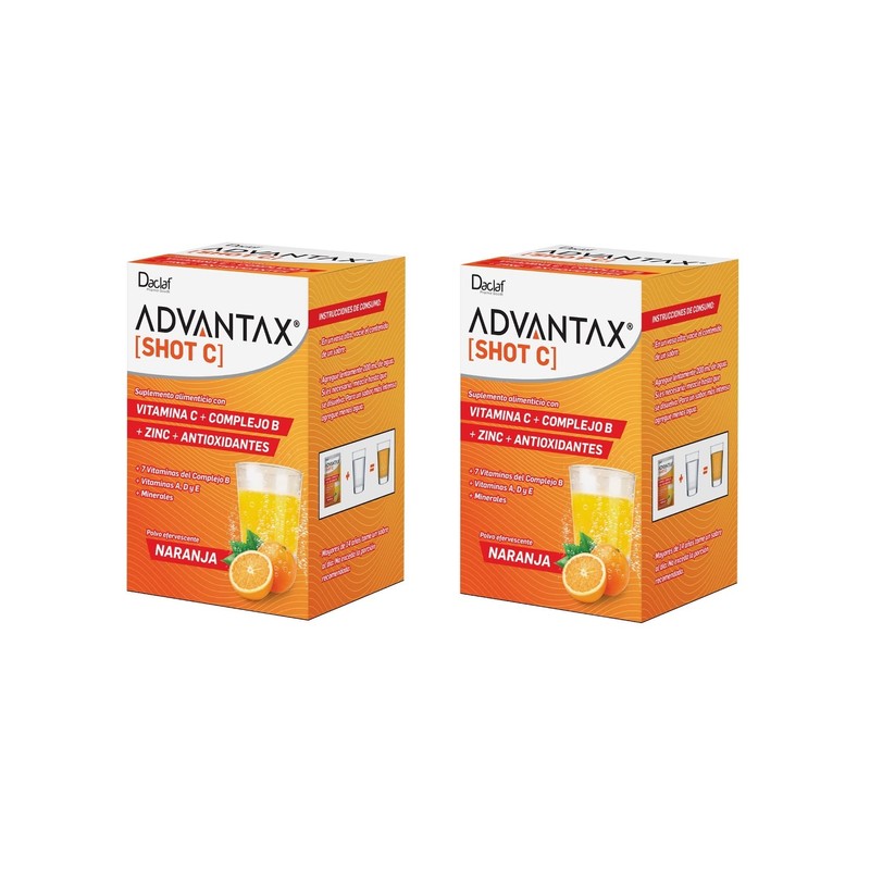 ADVANTAX SHOT C Vitaminas Complejo B Antioxidantes Zinc Sabor Naranja Efervescente (20)