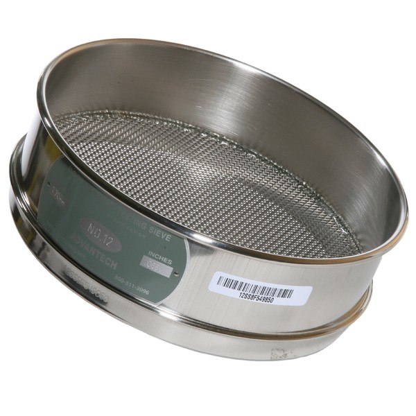 ADVANTECH - 12SS8F Advantech Stainless Steel Test Sieves, 8" Diameter, #12 Mesh, Full Height