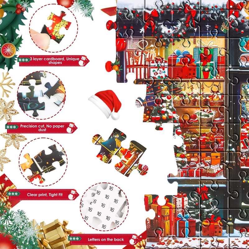- 🧑🎄【Surprising Christmas gifts and home decorations】The Advent Calendar 2024 is a perfect gift for advent calendars and puzzle lovers, adults and teenagers, you can also frame and hang the finished puzzle to decorate your home and create a warm atmosphere with the family.