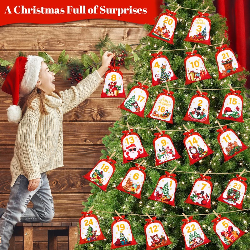 - High quality: our advent calendars for filling children are made of flat-like fibers, which are softer and more wear-resistant than kraft paper, washable and reusable, so they can be used again next year. The cord design makes it easy to insert and remove gifts