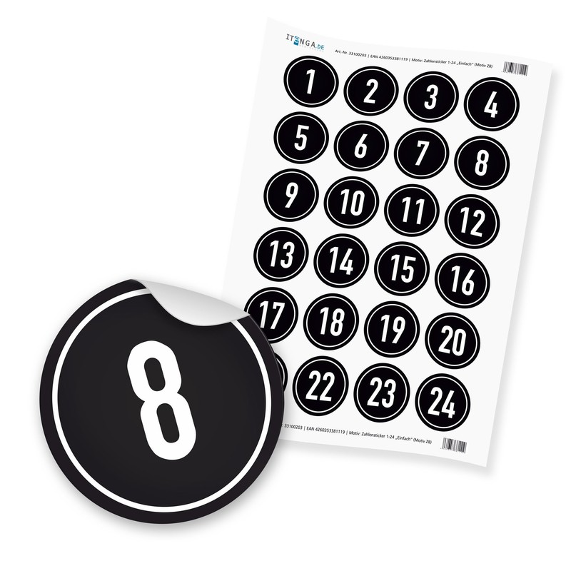 Advent Calendar Numbers 4 cm Number Stickers 1-24 Black White Number High Gloss