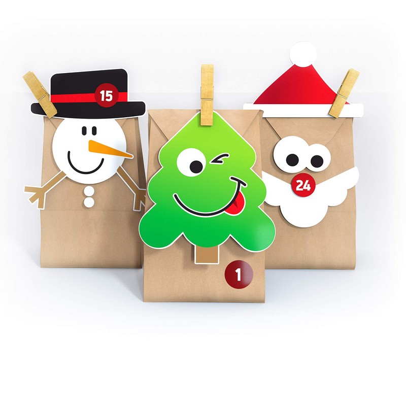 - Creative complete set: 4 cute Christmas motifs for customising – 6 Christmas trees, 6 reindeer, 6 Santa Claus and 6 snowmen plus stickers for a homemade advent calendar