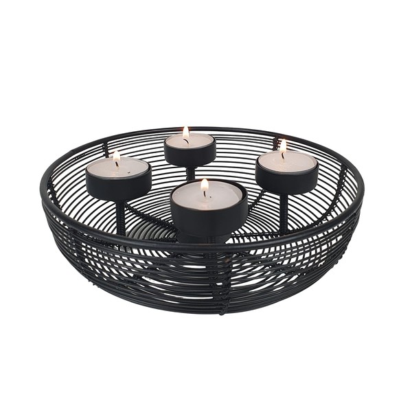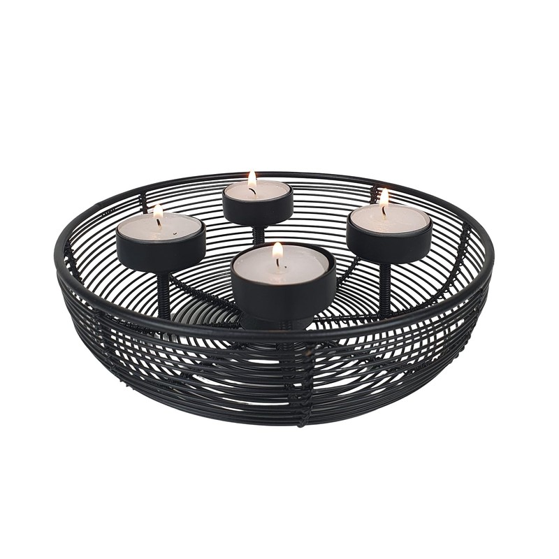 Advent Wreath Metal Bowl Diameter 20.5 cm Black with 4 Tea Lights