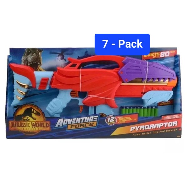 Adventure Force 7-Pack: Jurassic World Pyroraptor Pump Clip-Fed Dart Blaster 🆕
