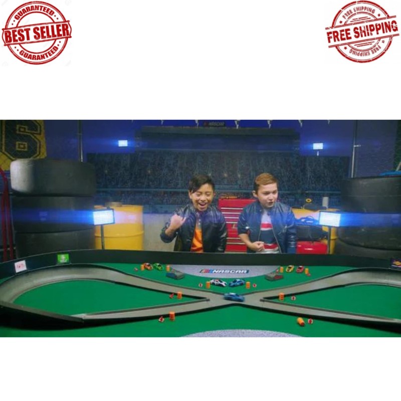 - Comes with 40 pieces! figure 8 circuit (15 track pieces), 2 motorized NASCAR electric race cars, 2 flash chargers, 6 barrels, 6 cones, 8 billboards and a labeling shee