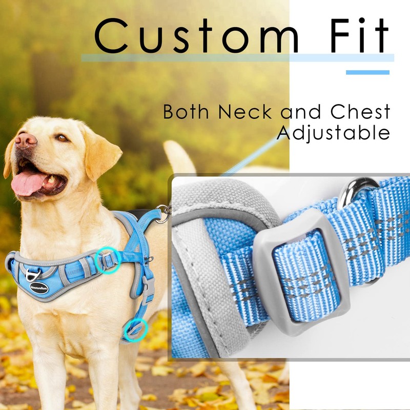 - No-pull and No-choke: Our upgraded dog harness no pull widened the area of the harness at the neck for the dog. The unique design can effectively protect the dog's neck from strangulation when leading the dog to run.