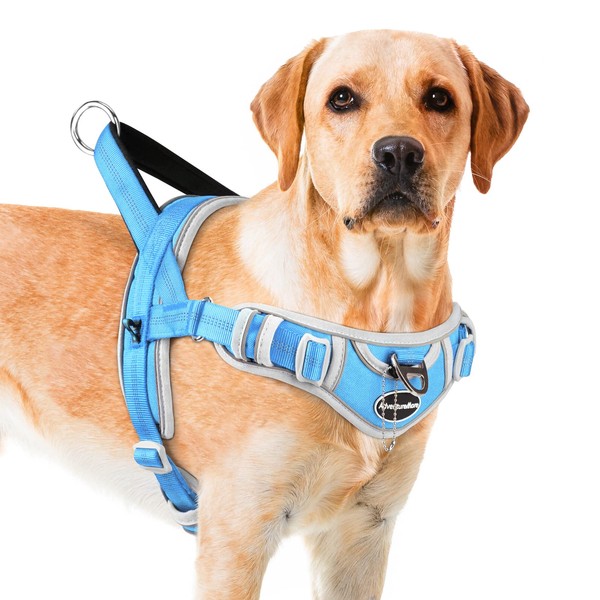 ADVENTUREMORE Dog Harness for Large Dogs No Pull, Sport Dog Halter Harness Reflective Breathable Dog Vest Escape Proof Dog Harness with Easy Control Front Clip Handle for Training Walking L Blue