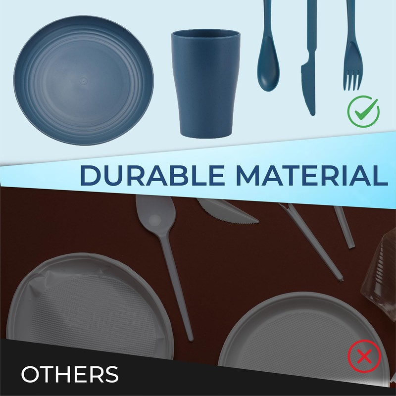 - COMPREHENSIVE: Designed for versatility, our camping dinnerware set has essential items like camping plates and bowls set, and camping cutlery set. Enjoy a complete dining experience in the outdoors.