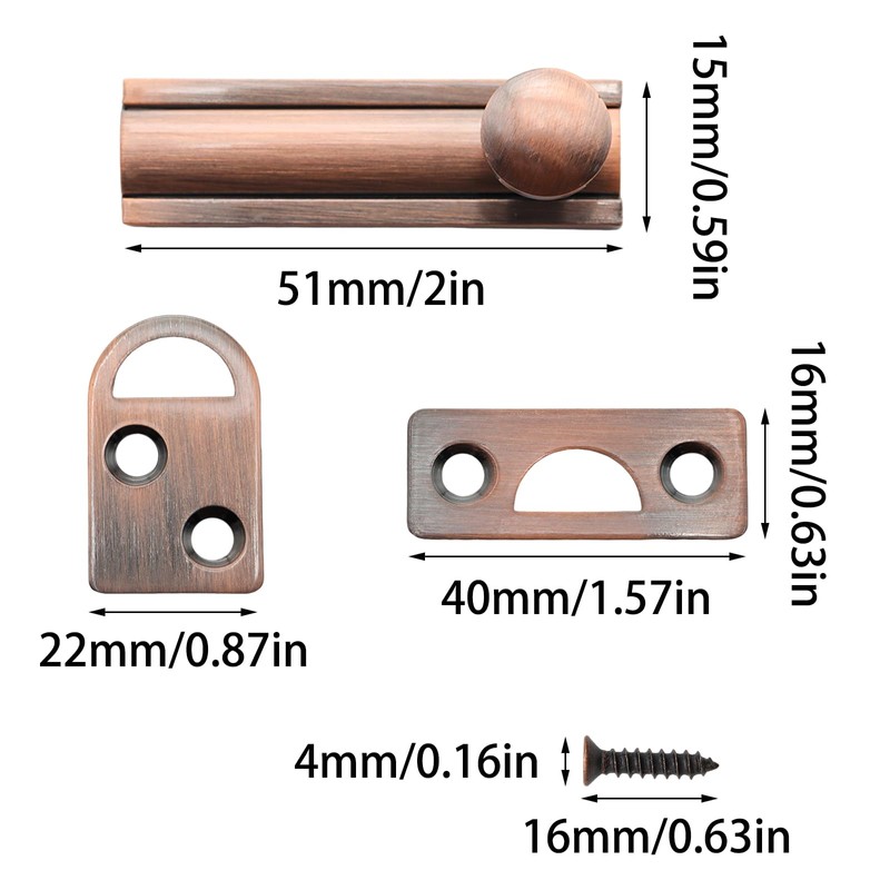 - Good Idea: The 2 Inch Brushed Red Bronze Solid Brass Surface Bolt is a great idea. With its impeccable packaging, unique design, high-quality materials, and wide range of uses, it offers a smart solution to upgrade your cabinets and doors with both functionality and aesthetics.