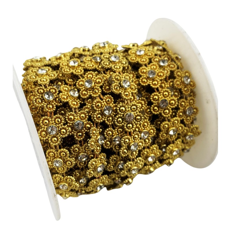 AEAOA 10 Yard Gold Flower ABS Pearl Chain Trims, Crystal Beaded Applique Rhinestone for Bridal Wedding Party (LZ208)