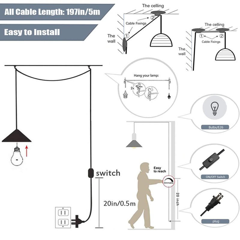 - INDUSTRIAL DESIGN : 16.4FT length hanging pendant light cord with E26 socket, insulation flame retardant heat resistant, corrosion resistant, durable。