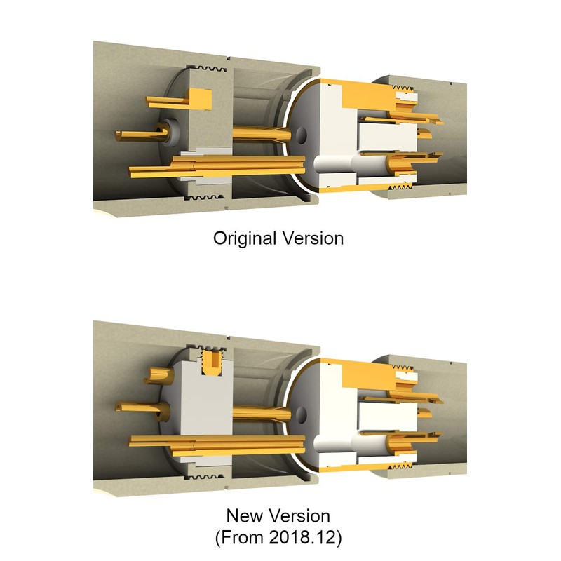 The PTFE insulator of the Female end fixed on the body by latch function.