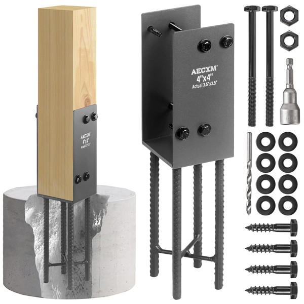 AECXM 4"x4" (Actually 3.5"x3.5") Heavy Duty U-Shaped Fence Post Holder Bracket, Wet Concrete Post Bracket, for Deck railings, Fences, mailboxes, gazebos Wet Concrete Foundation Support (Black-1Pack)