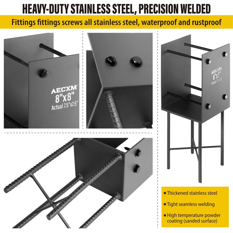 - SIMPLE INSTALLATION: All accessory screws (all made of 304 stainless steel) are included. 1. Insert the anchors into the wet concrete before the concrete solidifies; 2. After the concrete dries, insert the wooden post into the bracket; 3. Drill through holes on the upper and lower sides with an electric drill, insert the screws into the wooden post, and lock the nuts to complete the installation