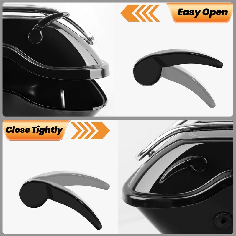 - Easy to Use - The suitable latch handle make open or close saddlebag easier. Softly lift a little lever, the lid is open