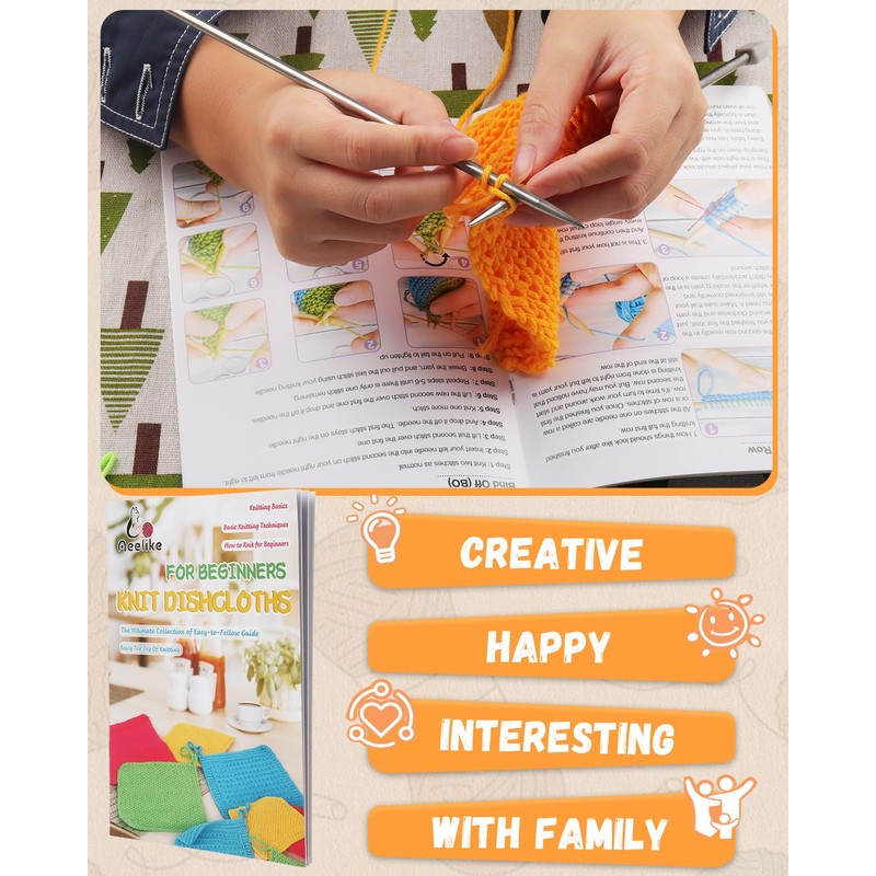 - Step-by-step instructions: these knitting set with instructions are easy to understand, and even those who have never knitted before will be able to start quickly. The instructions start with the basic stitches, are very easy to follow and there are pictures of each step. The instructions include 4 different patterns for dish towels, so craftsmen of all levels can perform their projects with safety and ease