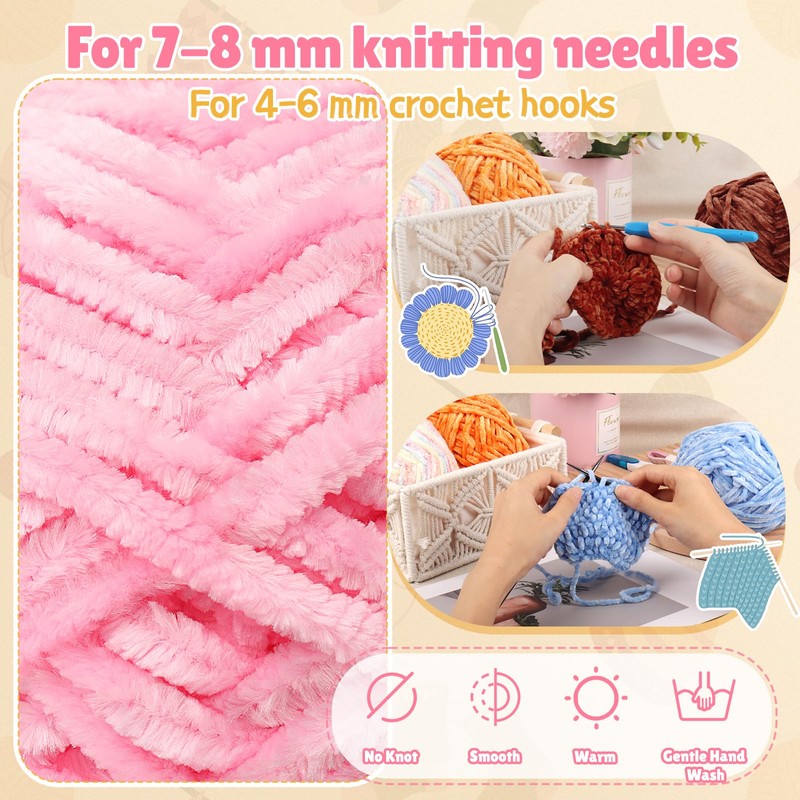 - Chunky Wool for Crochet and Knitting or DIY Craft Projects: The 4 pack plush chenille chunky yarn for crocheting 100g offers a soft, versatile, and thick option for knitting and crocheting projects. The chunky crochet knitting wool yarn is incredibly soft and perfect for a variety of projects. Its thick texture allows for quick and easy crafting, making it ideal for handmade bags, hats, socks, scarves, baby blankets and amigurumi (crocheted dolls or stuffed animals)