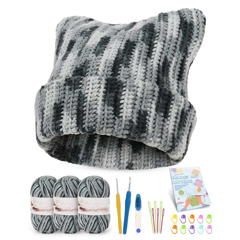 - [ Easy to Learn and Follow ]: If you still hesitate for unable to crochet, then turn to Aeelike beginner crochet kits right now. Our crochet starter kit is beginner-friendly and comes with detailed instructions and demonstrations that clearly showed how to crochet a cute cat ear hat, making learning crochet skills a breeze and helping kids or adults go from beginner to expert.