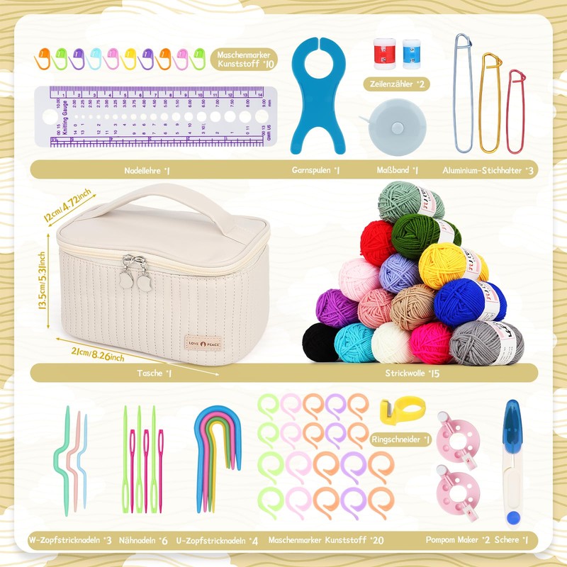 - [Practical accessories with 15 acrylic wool] -- The complete crochet set for beginners is an inexpensive set with ergonomic crochet hook, everything is included in this small set to start crocheting, the needles are lightweight and easy to handle with a good grip, the other accessories such as stitch markers, scissors, they are super practical in your future creations, practical for beginners, professionals, grandmother.