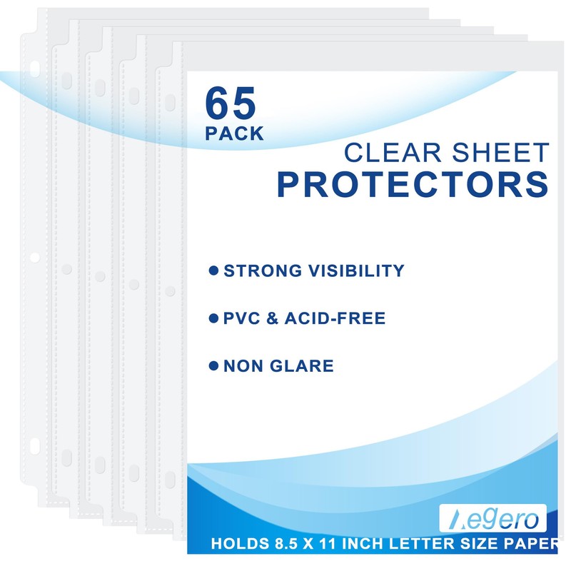 - 【65 Pack of Heavy-Duty Sheet Protectors】: Polypropylene sheet protectors (65-pack) can hold 8.5 x 11 inch letter size paper. Extra capacity binder sheet Fit for standard 3 ring binder.