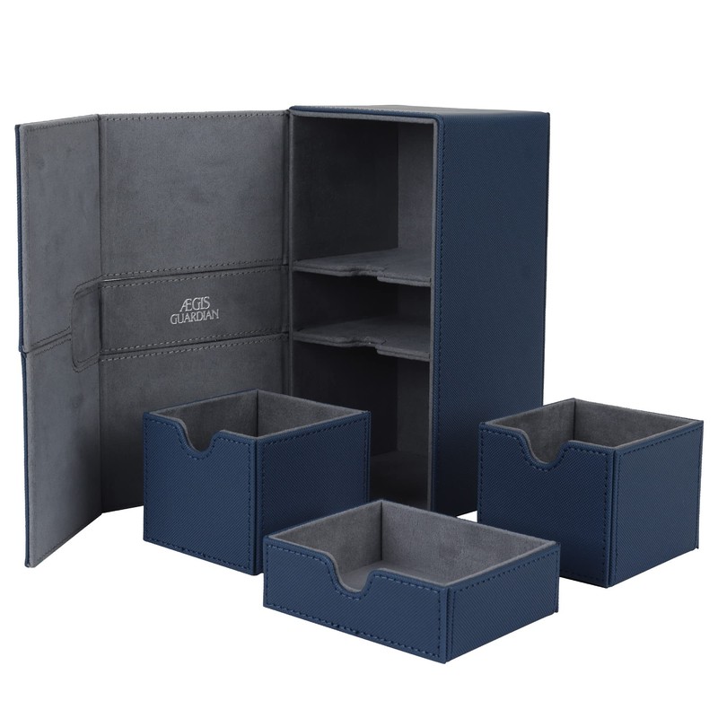 AEGIS GUARDIAN Card Deck Box Hold 200+ Double Sleeved Cards, Commander Deck Box with 3 Tray for TCG MTG CCG, Deck Game Case PU Leather 7 Strong Magnets, Blue