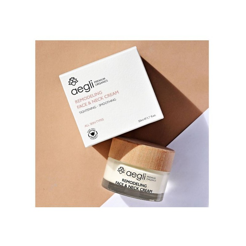 Aegli Remodeling Face & Neck Cream is a rich anti-aging 24h face cream with clean and effective certified organic ingredients that target all signs of aging for a visibly youthful skin.