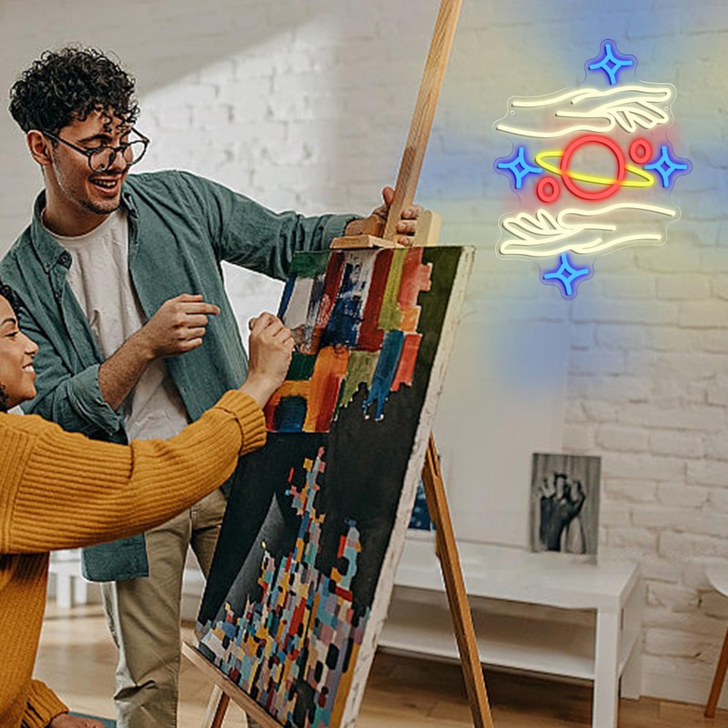- Eye-catching Galaxy Logo:This Holding the Galaxy neon sign takes the glowing starry river as its soul and is gently held up by two powerful palms, infusing your space with profound cosmic energy. Whether it is for decorating a spiritual studio or a modern home, it can instantly become the visual focus, creating a unique atmosphere of ethereal romance.