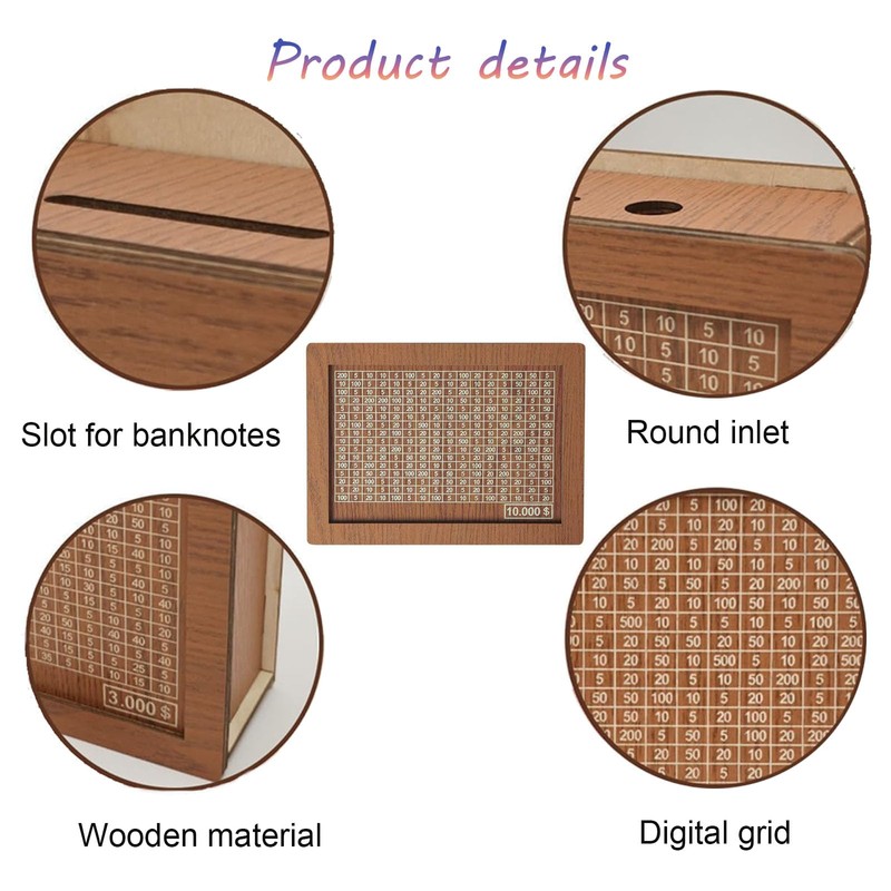 - Wide Applications - Wooden Coin Bank Box,an innovative saving box designed for all ages. Not only a money storage box, but also a beautiful decoration for home, countertop, bedroom, living room, dressing table.