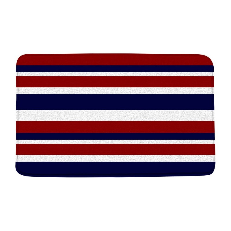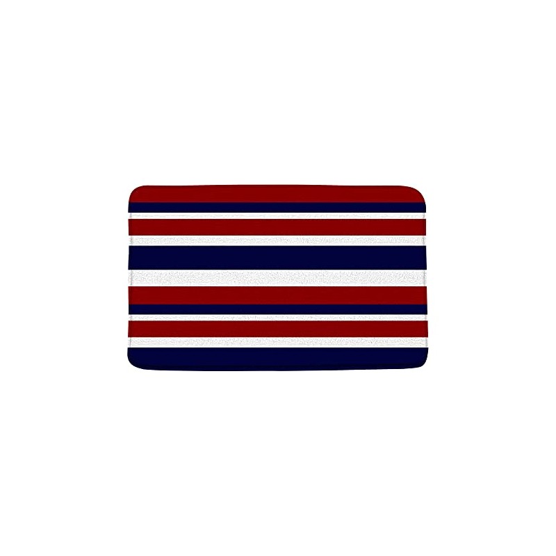 AEMBEE Navy Blue Red White Bath Mat Geometry Red Nevy Blue White Lines Geometric Classic Simple Creative Modern Bathroom Mat Rug Memory Foam Doormat,17.8x29.5 Inch