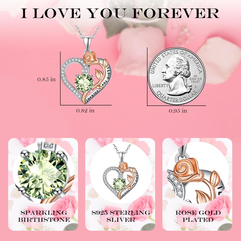 • 💗Love has infinite possibilities💗 -- The heart symbolizes your eternal love. The infinity symbol represents endlessness and eternity. Many believe that intertwining the heart and infinity symbol with Peridot convey the same meaning - I Love You Forever. The rose symbolizes romantic love. A round pendant encrusted with gemstones, making the necklace sparkle, symbolizes a fulfilling relationship. Wear it and you'll be the center of attention no matter the occasion.
