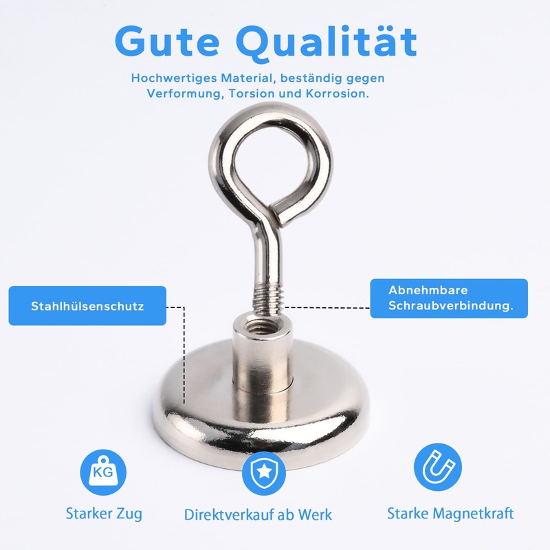 - QUALITY CRAFTSMANSHIP The magnets are protected by a steel sleeve and feature a 3-layer Ni-Cu-Ni coating that prevents corrosion. The metal hanging ring is made of high quality 304 stainless steel, which extends the life of the magnet.