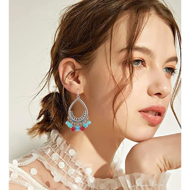 Aenu Teardrop Earrings for Women Multi Boho Beaded Dangle Drop Earring (Turquoise)