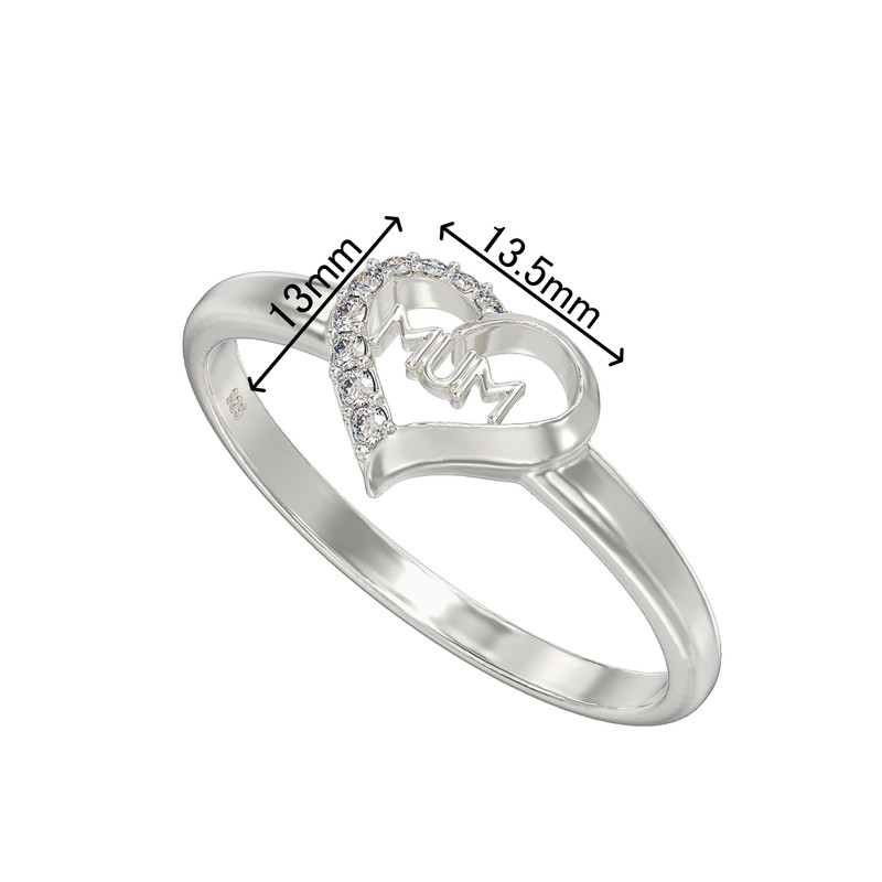 Aeon Jewellery Silver Mum Ring -925 Sterling Silver & Cubic Zirconia Heart | Available in Size U | Polishing Cloth & Gift Box Included