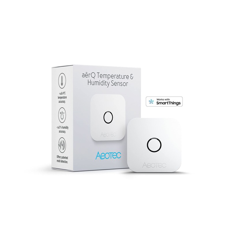 AEOTEC aërQ ZWA039 Temperature and Humidity Sensor, Z-Wave, SmartThings, White