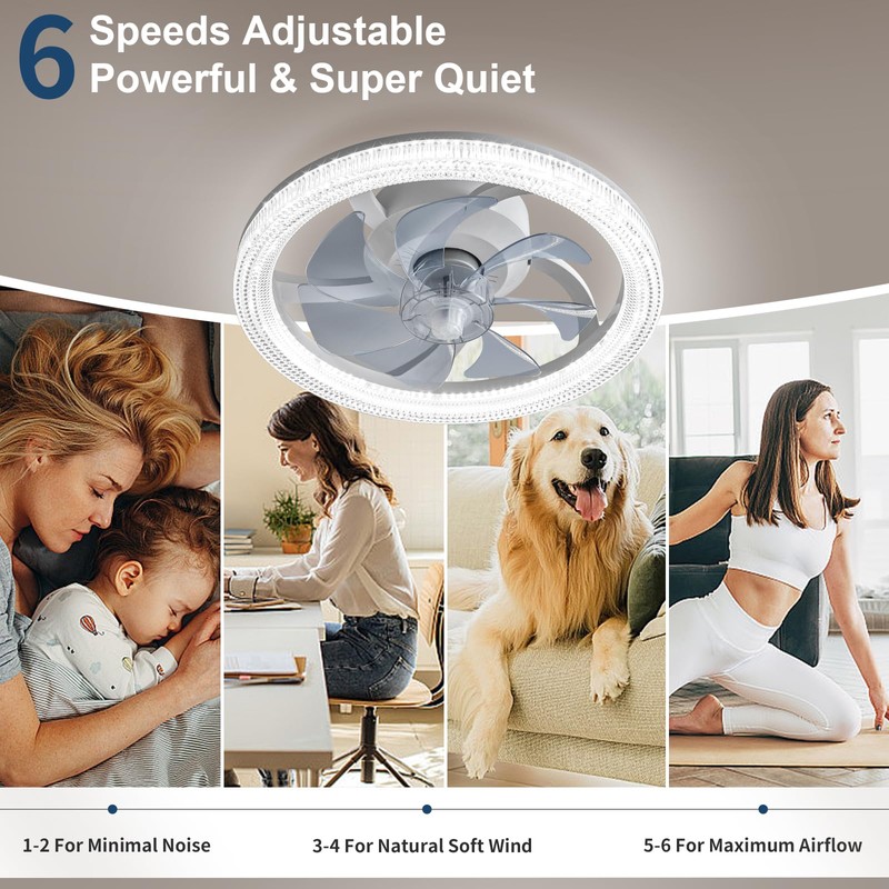 - 6 Speeds & Quiet: This ceiling fan with light and remote control has 6 different air speed options so you can choose the strength of the airflow to your liking. The ceiling fan motor produces less than 35 decibels of noise, creating a quiet and comfortable sleeping environment.