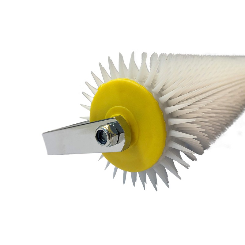 - The spiked roller has a steel double arm bracket (nickel-plated). This double arm bracket guarantees high stability and optimal fixation of the splash guard. When cleaning the roller, it can be easily removed from the hanger to clean it.