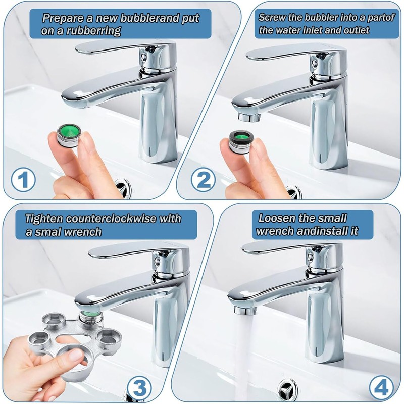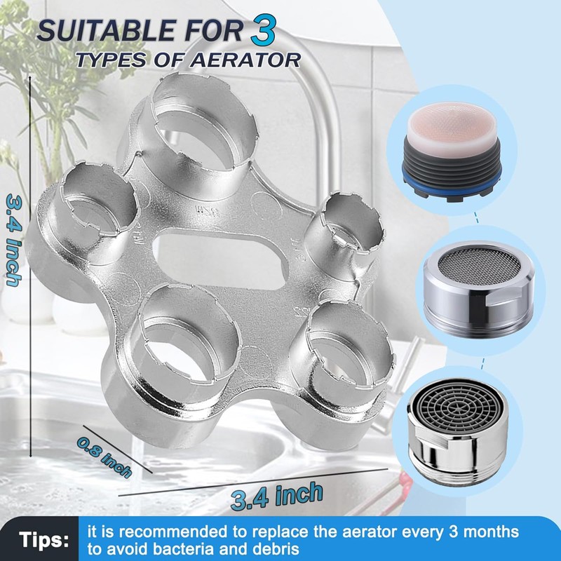 - High compatibility: Our tap aerator tool fits most household aerators - suitable for kitchen taps, bathroom taps, sink valves and more; say goodbye to low water pressure and splashing water! Tip: We recommend changing the aerator every 3 months. This ensures the best water quality and optimal flow - for economical consumption and more health.