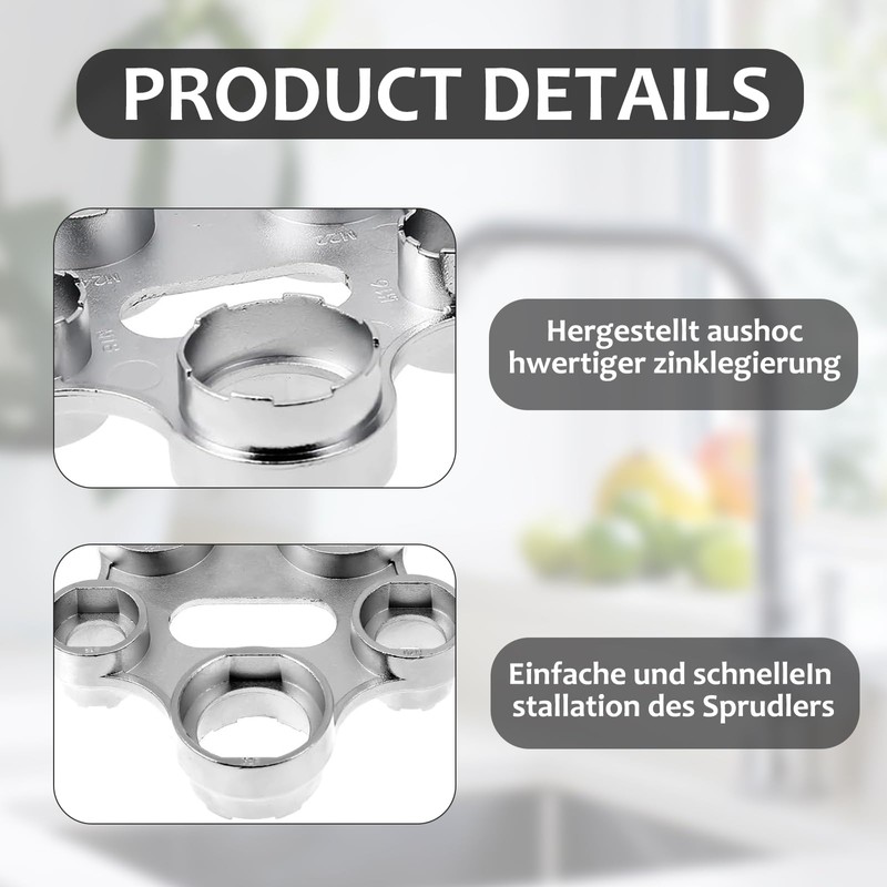 Aerator Service Key, 10-in-1 Tap Key, Universal Aerator Mounting Key, Comes with 1 Set of Tap Aerator Adapter, Very Adaptable