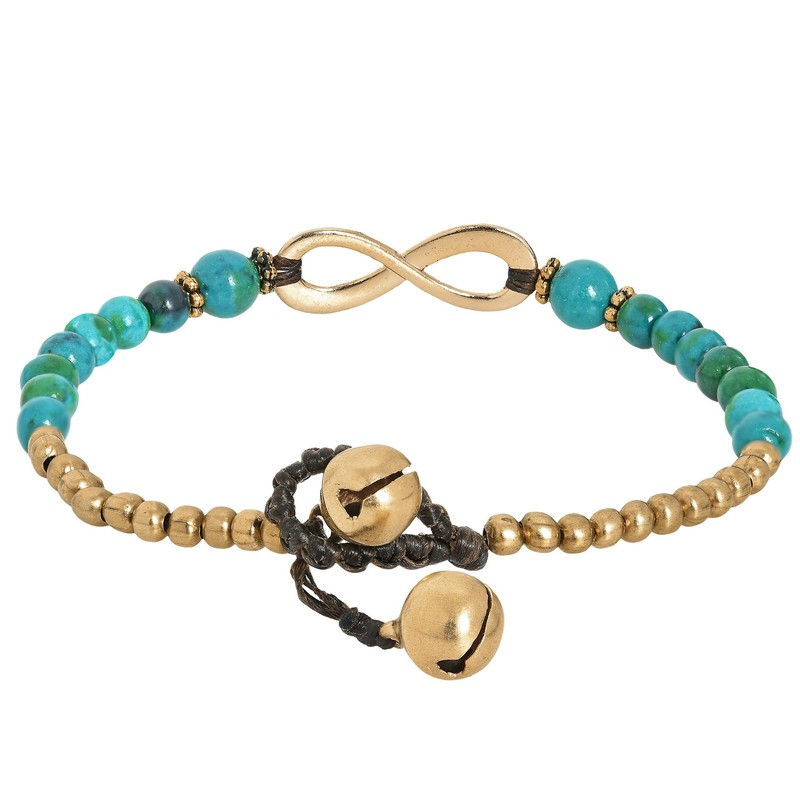 AeraVida Beautiful Infinity Symbol with Malachite & Fashion Brass Beads Handmade Link Bracelet | Fashionable Boho Bracelet for Women
