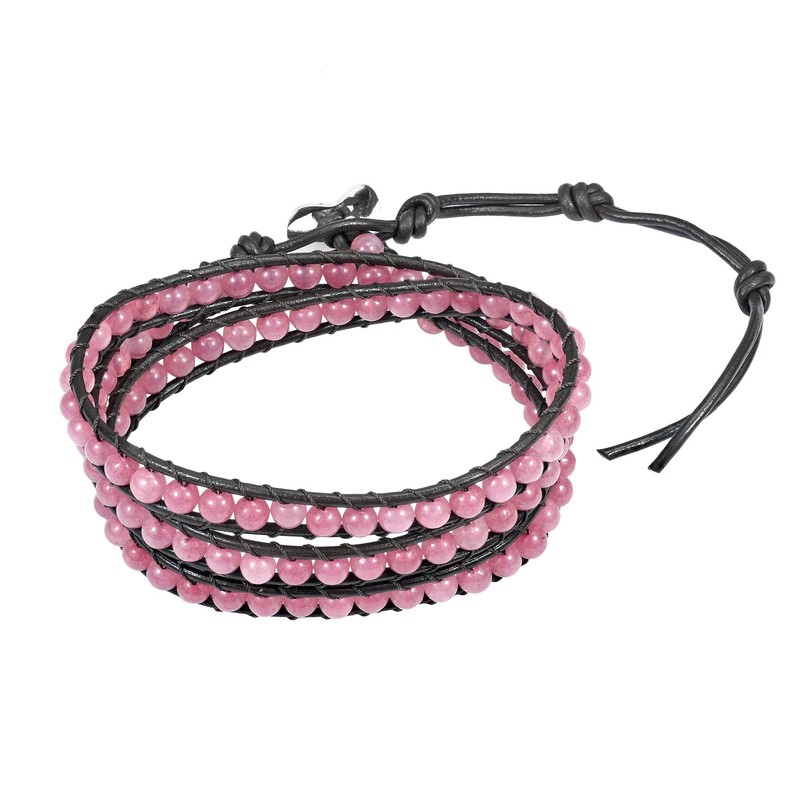 AeraVida Bohemian Multi Layer Pink Muse Rhodonite Gemstone Tribal Wrap Leather Bracelet