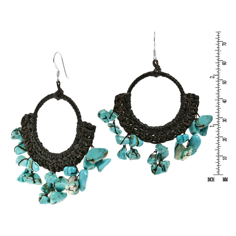 AeraVida Bohemian Summer Simulated Turquoise Chandelier Hoop Cotton Rope Sterling Silver Dangle Earrings | Stylish and Unique Women's Fashion Jewelry Accessory