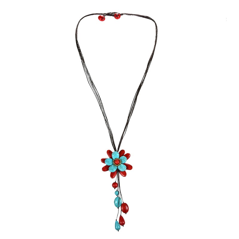 AeraVida Charm Simulated Turquoise & Reconstructed Red Coral Floral Wonder Dangle Pendant Necklace
