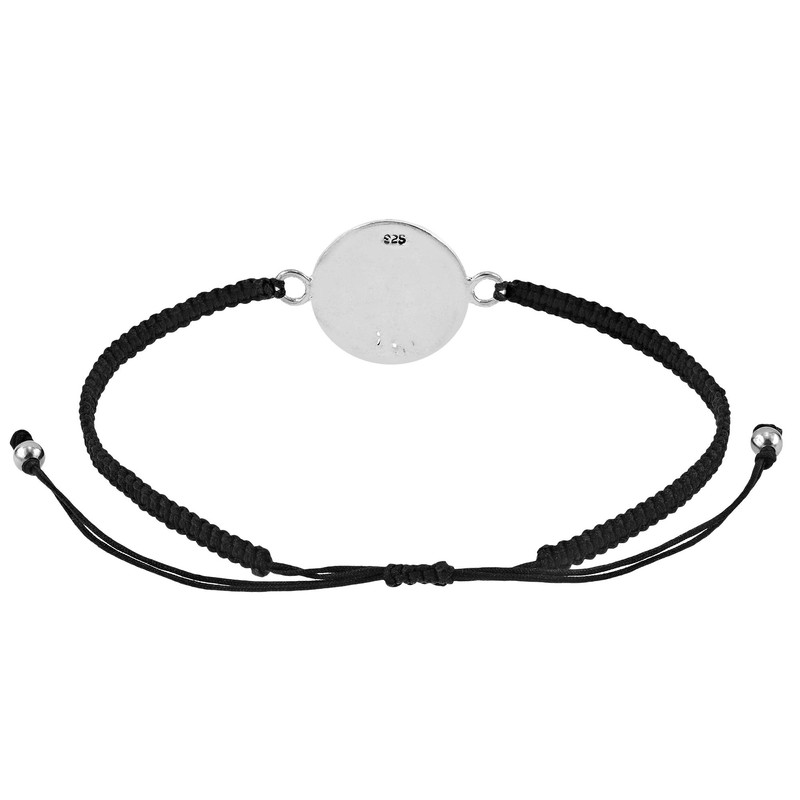 AeraVida Classic Yin Yang Balance .925 Sterling Silver Charm on Black Adjustable Bracelet