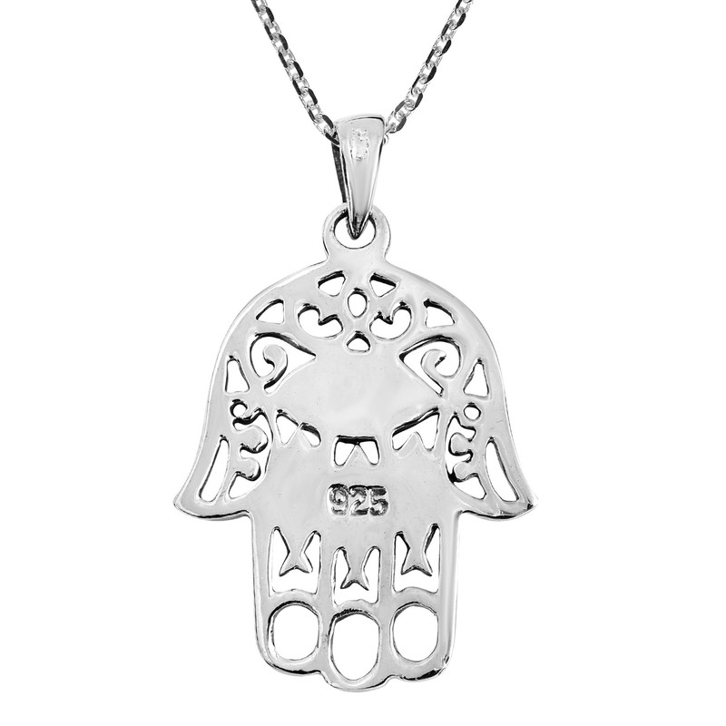 AeraVida Hamsa Hand with Evil Eye Blue Lapis-Lazuli Inlaid .925 Sterling Silver Necklace