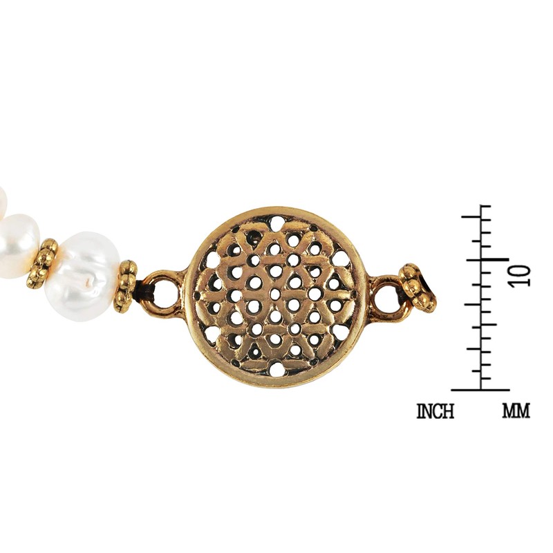 AeraVida Intricate Flower of Life Charm Cultured Freshwater Pearl Brass Beads Jingle Bell Bracelet