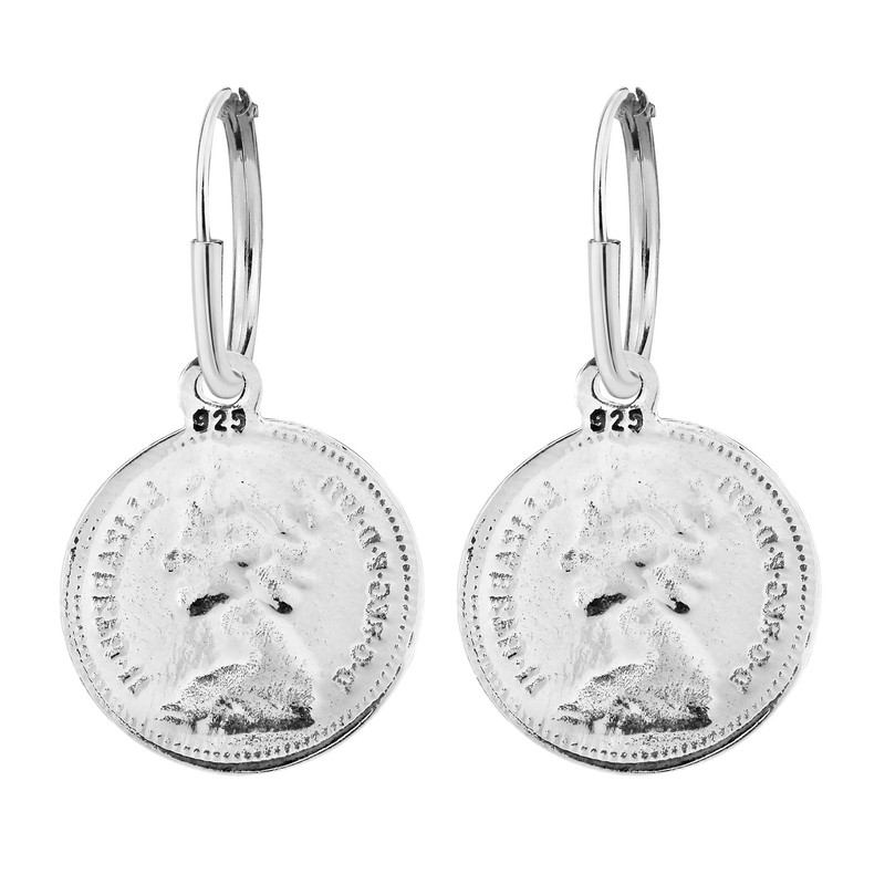 Add a unique touch of style to your outfit of the day with these stunning earrings from artisan Jai of Thailand. For this design, she crafts a pair of stylish coins using fine sterling silver and then attaches them to 925 sterling silver hoops. All coming together to form an on-trend fashion accessory that you can wear with just about anything. Both fun and fashionable, these dangle earrings will make a wonderful addition to your style repertoire. PLEASE NOTE: The handcrafted nature of this product will produce minor differences in design, sizing and weight. Variations will occur from piece to piece, measurements may vary slightly.