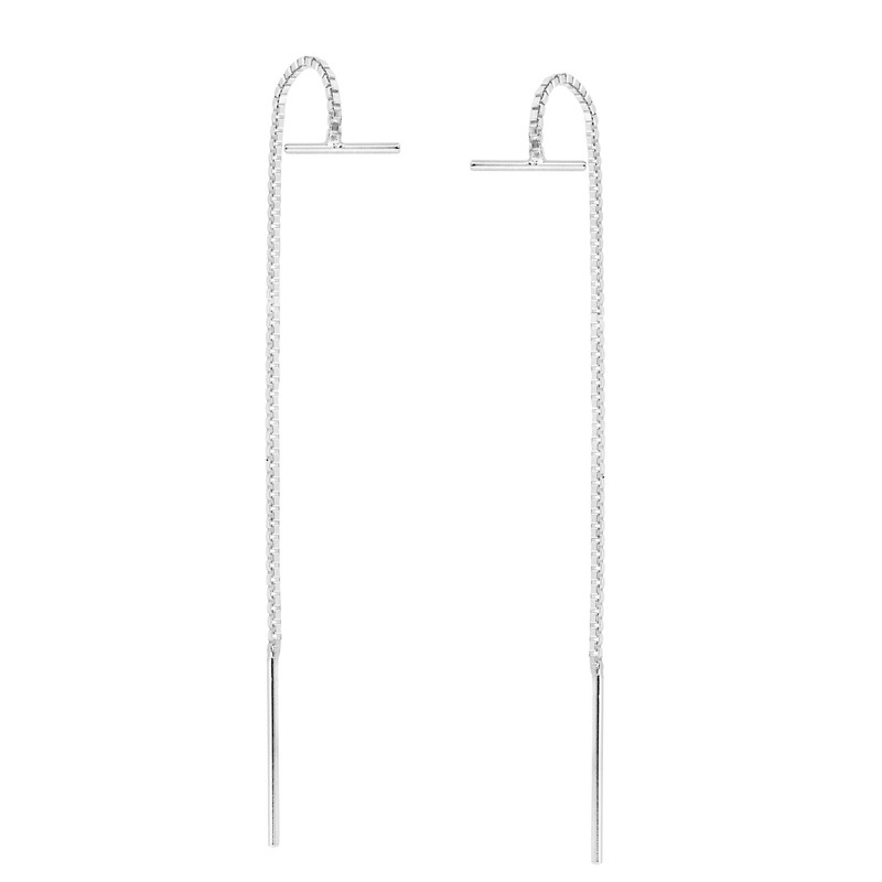AeraVida Modern Horizontal Bar Thread Slide Sterling Silver Earrings | Classic Sterling Silver Earrings | Bar Slide Through Earrings | Earrings For Women | Gift for Daughter
