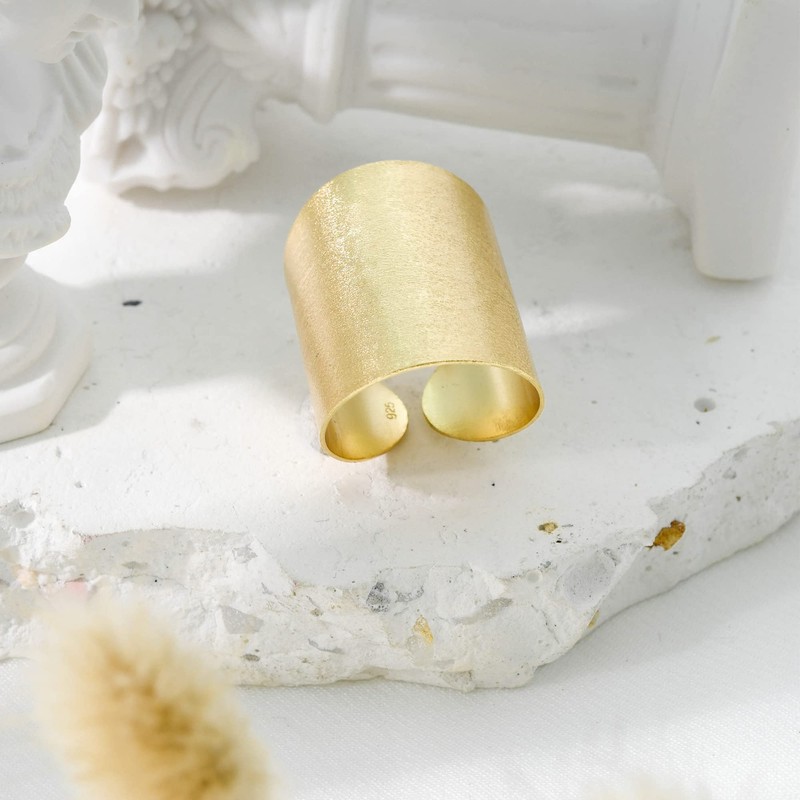 AeraVida Ring for Women – Boho Statement Satin Gold-Plated .925 Sterling Silver Adjustable Cuff Ring | Modern Open Wrap Band | Lightweight Comfort Fit Jewelry